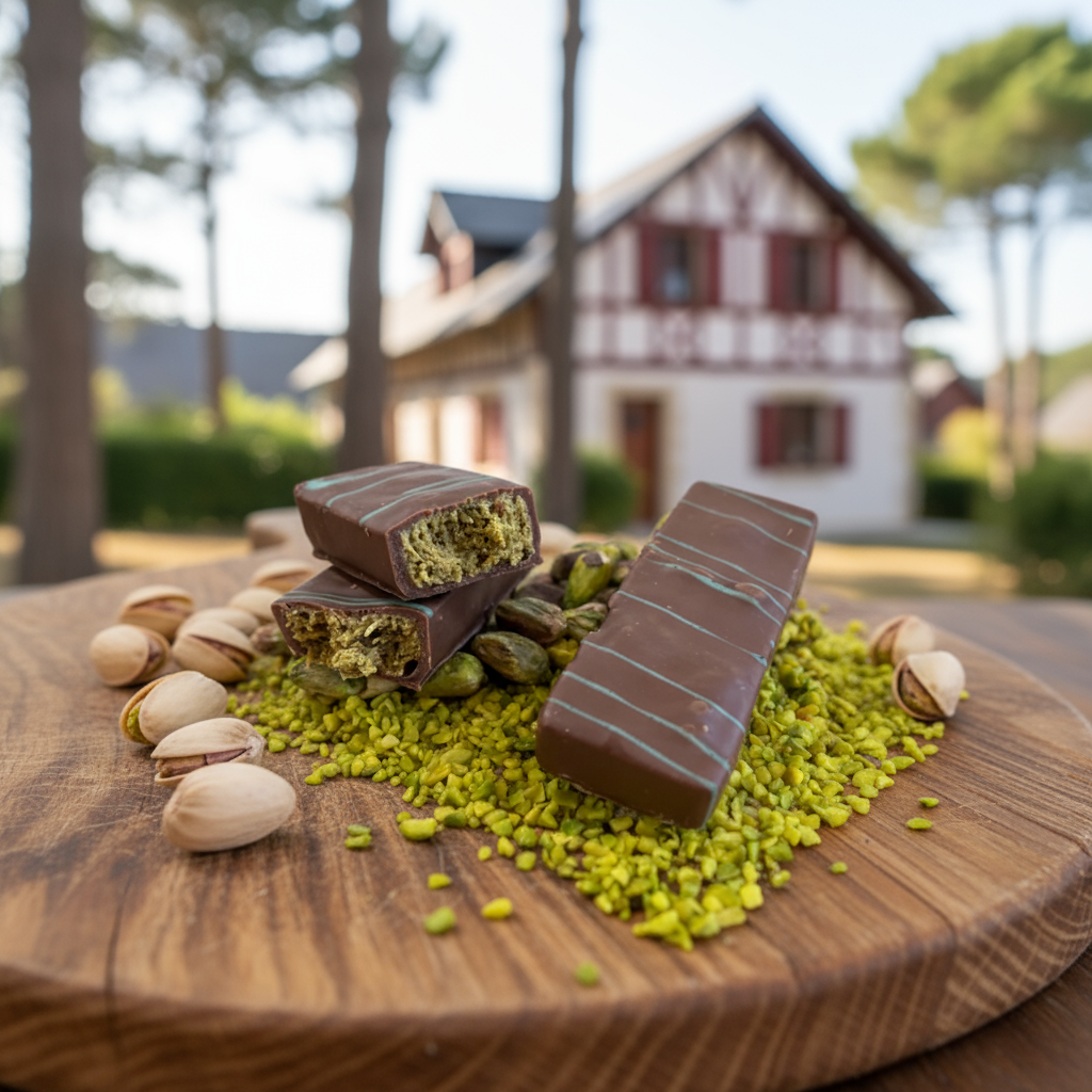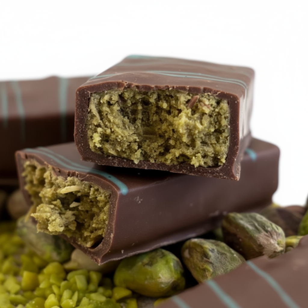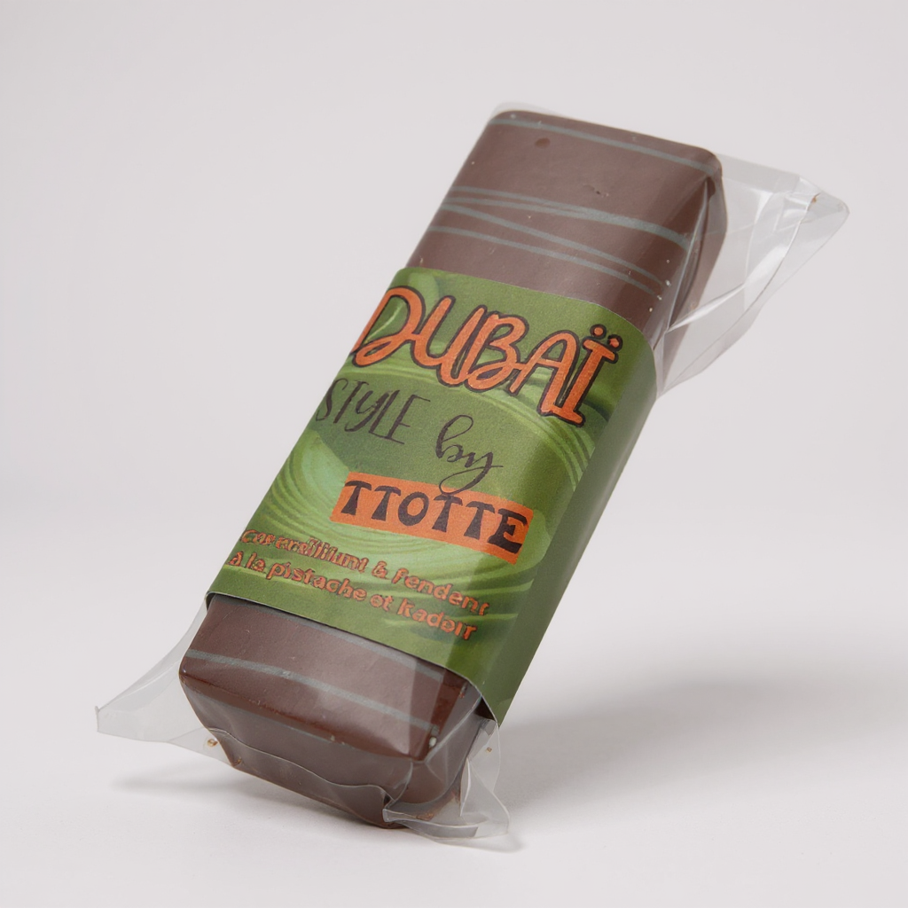 Succombez à notre barre à la pistache "Dubaï Style", un mélange délicieux de pâte de pistache naturelle, de kadaif croquant et de chocolats blanc et au lait. La douceur du chocolat blanc se marie parfaitement à la richesse de la pistache et à la légère note grillée du sésame torréfié. Une expérience gourmande aux saveurs subtiles et équilibrées qui vous transporte directement sous le ciel de Dubaï à chaque bouchée.